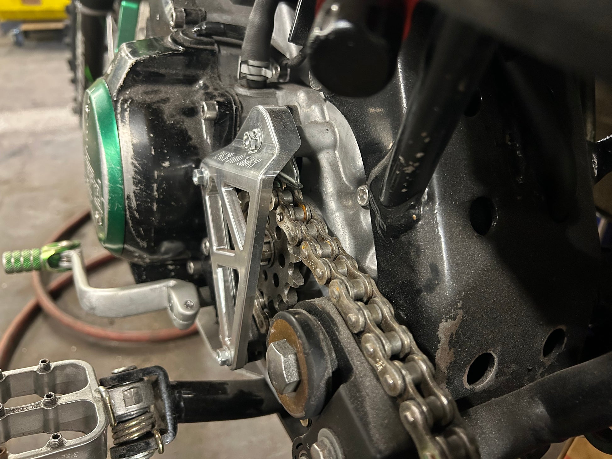 Newley designed KLX110 sprocket guard, designed to replace the factory guard while retaining the steel case saver. Requires no spacers unlike many others on the market. Provides solid coverage of the front sprocket while still shedding mud. Hardware included.